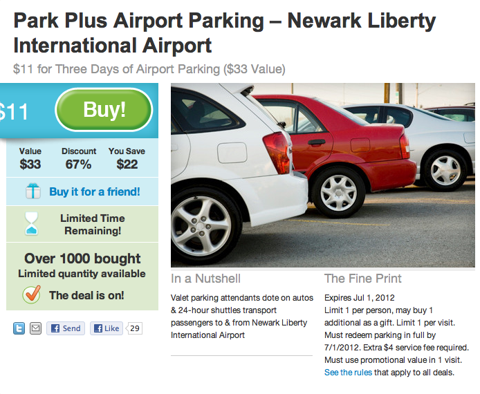 Here’s a pretty good deal from Groupon if you’re from NJ/NYC area and have upcoming travel from EWR: