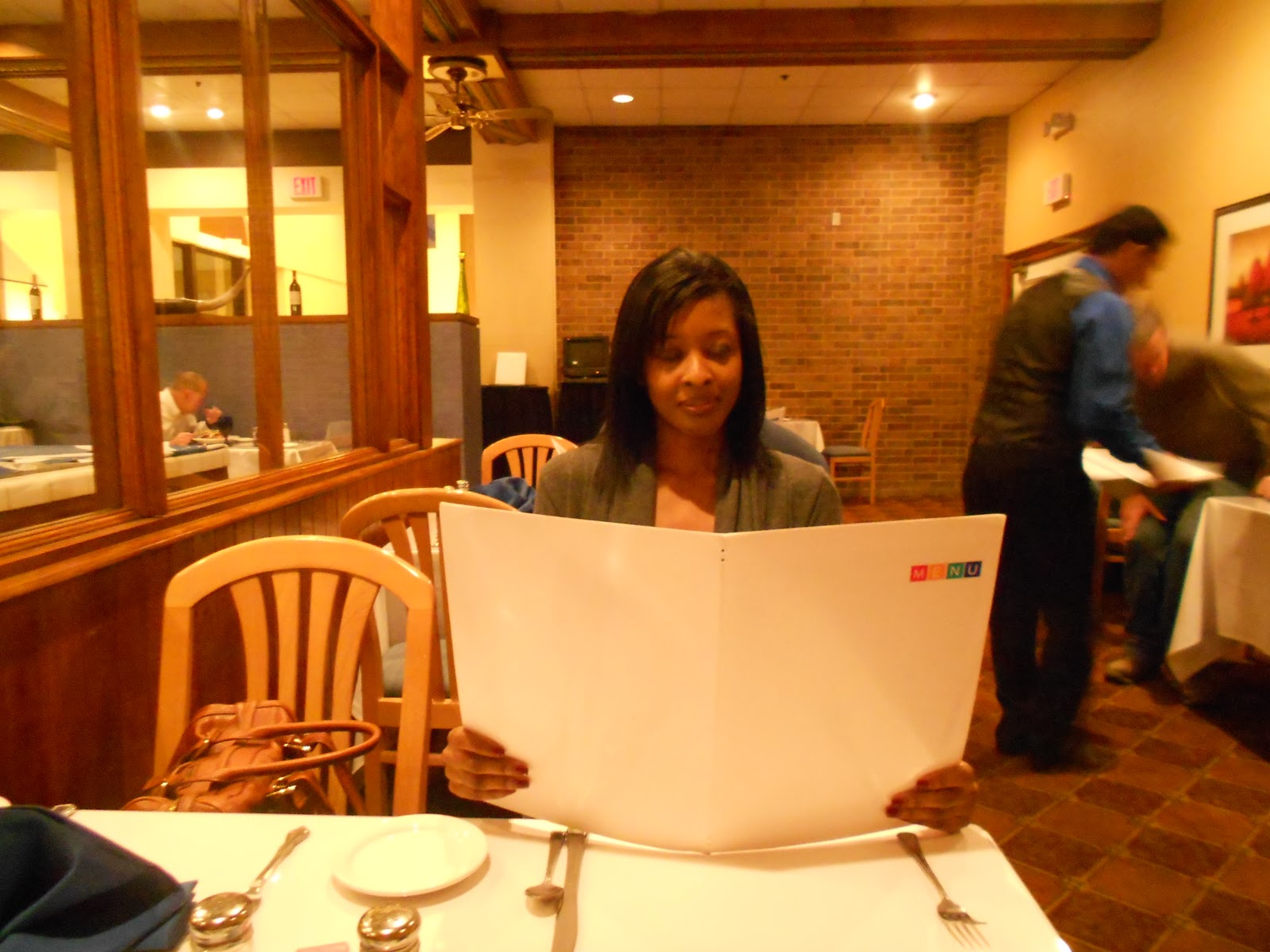 | Here’s Tiffany pretending not to pose while looking at the menu. |